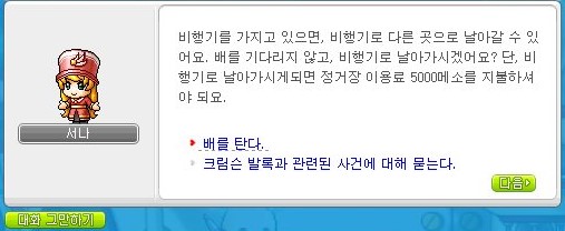 '승무원 서나와 대화하기'를 눌러준다.