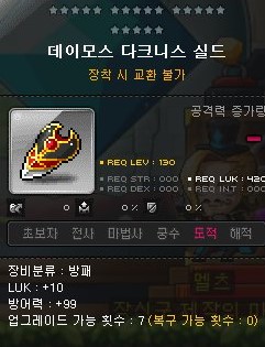 데이모스 다크니스 실드는 130렙제 도적 방패이다.