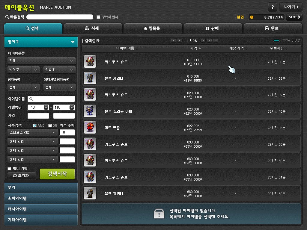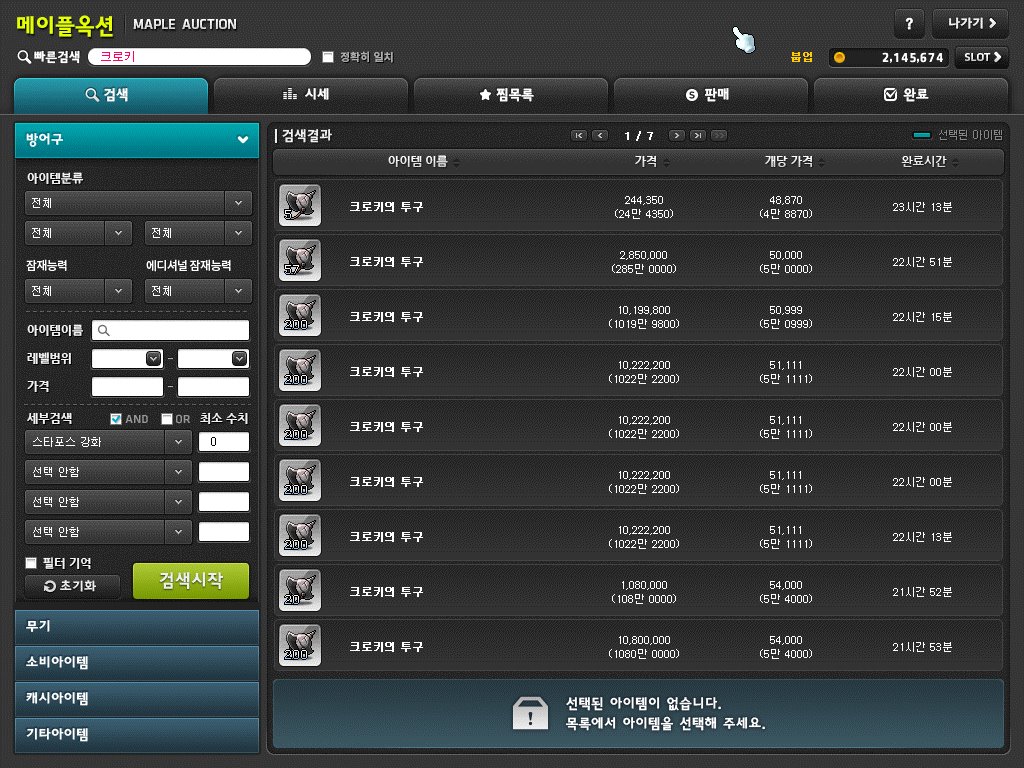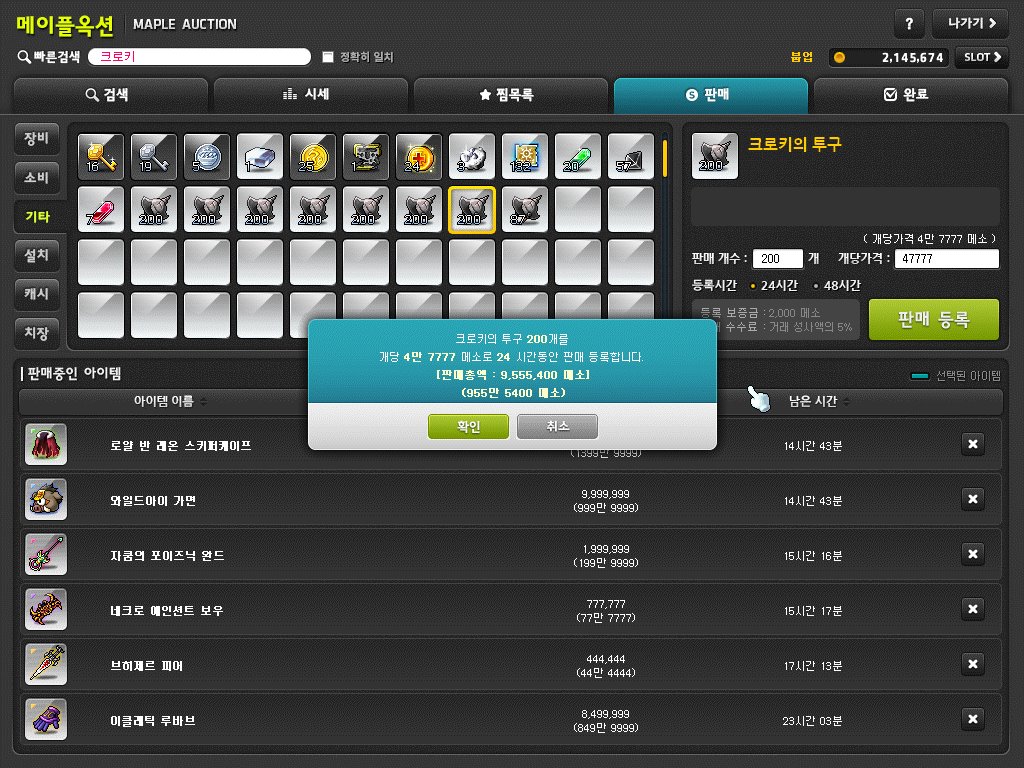 경매장에 검색해서 가격비교 후 팔면 60만 메소를 벌 수 있다.