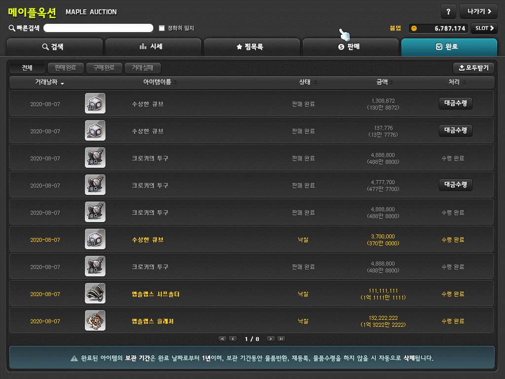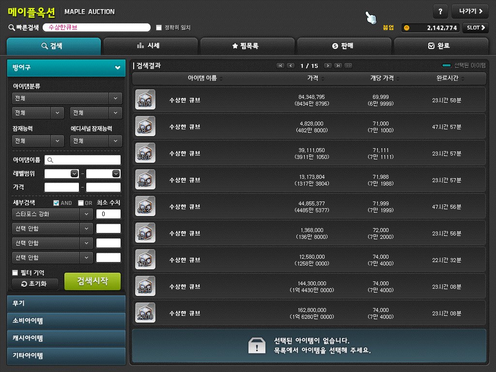 수상한 큐브도 경매장 가격 비교 후 올려준다.