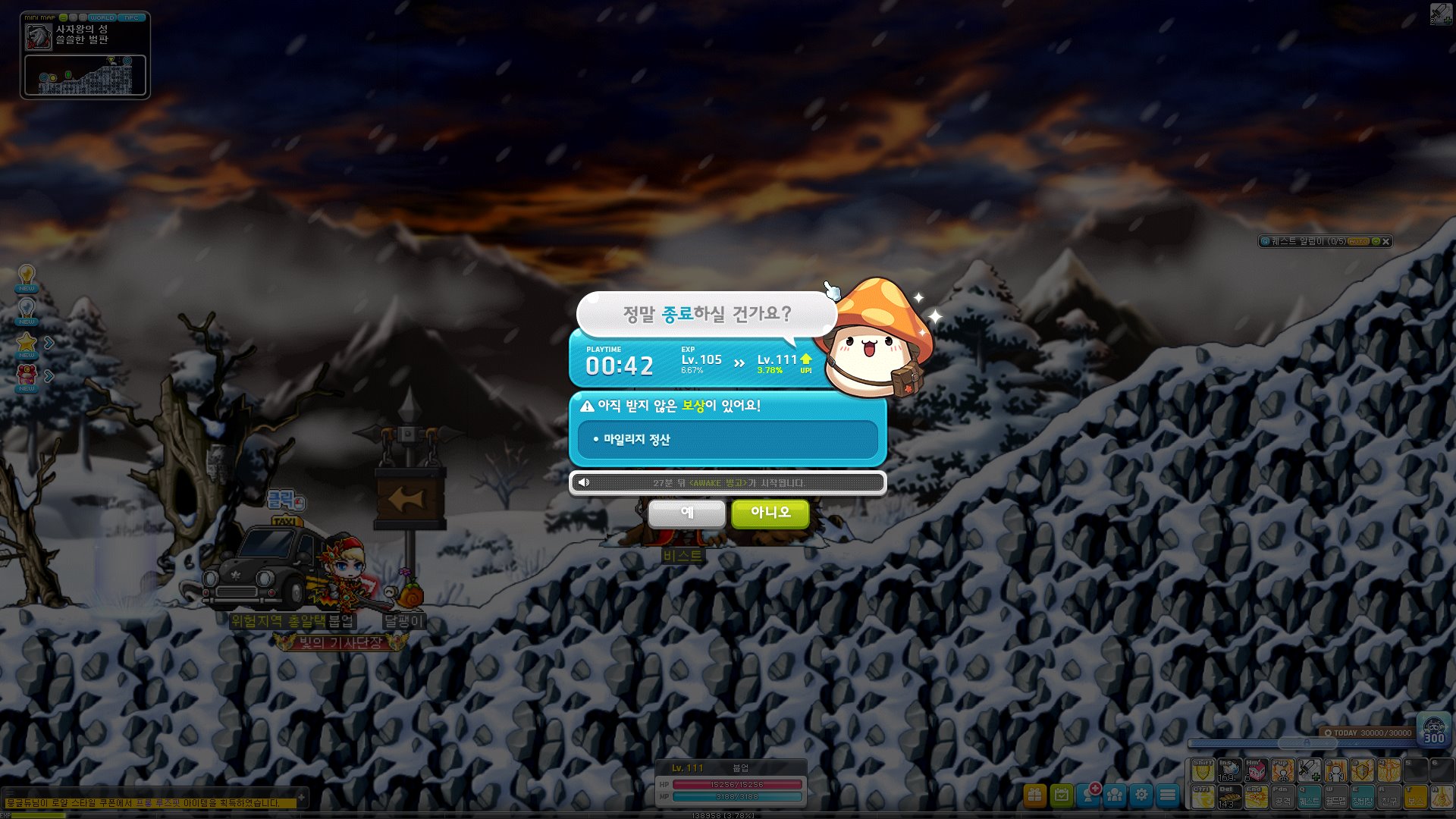 우선 레벨은 6레벨 정도 올랐고, 순수 사냥만으로는 아니고