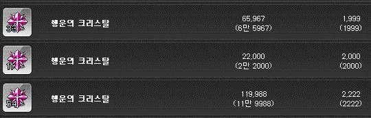 행운의 크리스탈은 개당 2천 메소이다.
