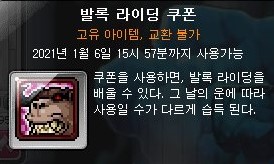 위 사진에 맨 왼쪽 아이템과 같이 발록 라이딩 쿠폰도 얻을 수 있다.
