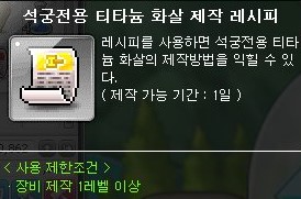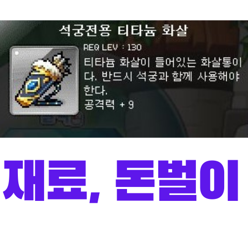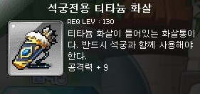 | 메이플스토리 장비 제작 돈벌이 <3> 활전용 티타늄 화살 (제작, 재료, 가격) (0) | 2021.02.22 |