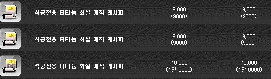레시피는 경매장에서 1만 메소 정도에 구매 가능하다.