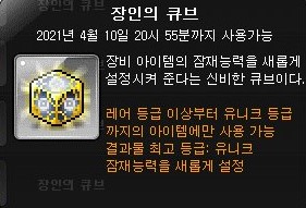 장인의 큐브는 유니크 등급의 잠재까지 돌릴 수 있는 큐브이다.