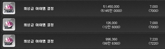 최상급 아이템 결정은 개당 7천 메소이다.