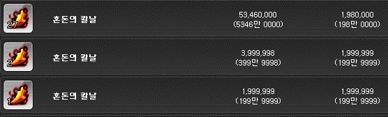 혼돈의 칼날은 개당 약 200만 메소이다.