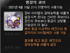 명장의 큐브는 레전드리 등급까지 돌릴 수 있는 큐브이다.