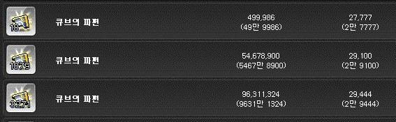 큐브의 파편은 개당 약 2만 8천 메소이다.