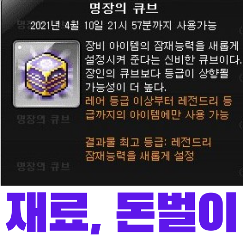 | 메이플스토리 장비 제작 돈벌이 <5> 장인의 큐브 (재료, 가격) (0) | 2021.04.13 |