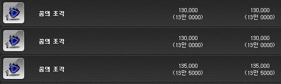 꿈의 조각은 개당 13만 메소이다.