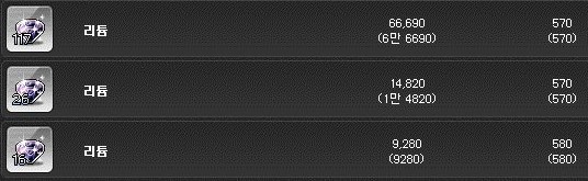 리튬은 개당 570메소이다.