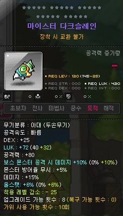 기본 스텟에 몬스터 방어율 무시 5%와 데미지 15%가 있는 것이 눈에 띄었다.