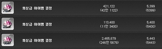 최상급 아이템 결정은 개당 5400메소이다.