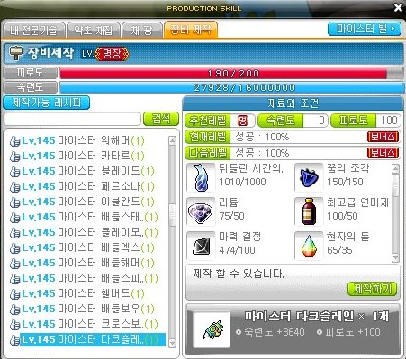메이플스토리 장비 제작 명장 달기 (만든 물품, 팁)
