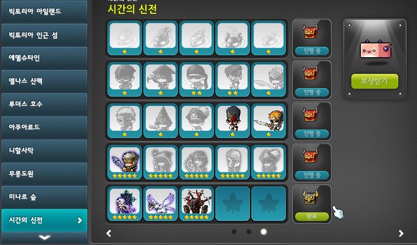 각 한줄을 모두 획득하면 보상과 더불어 탐험 부분에서 탐험이 가능하다.