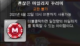 마일리지는 마일리지 꾸러미로 지급하고, 더블클릭하여 마일리지를 얻을 수 있다.