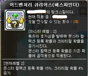 한가지 팁은 모험가 궁수의 링크 스킬이 몬스터 컬렉션 등록 확률 15%를 올려주므로,