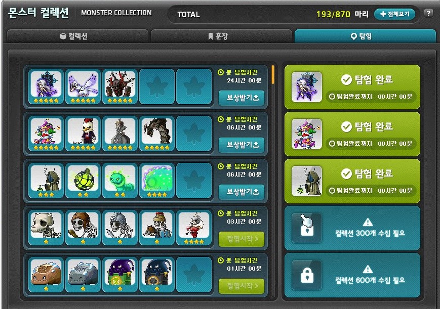 또한 몬스터 컬렉션을 등록한 수만큼 탐험할 수 있는 수도 늘어난다.