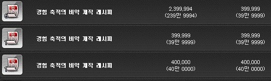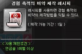 레시피는 경매장에서 40만 메소에 구입할 수 있었다.