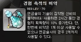 경험 축적의 비약은 2시간 동안 경험치 획득량 10%를 증가시켜 주는 비약이다.