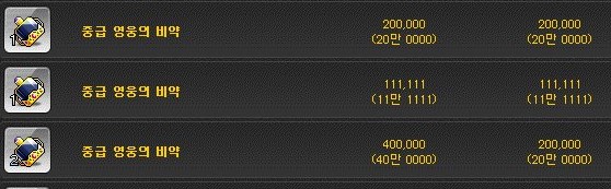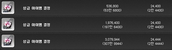 상급 아이템 결정은 개당 약 2만 4천 메소이다.