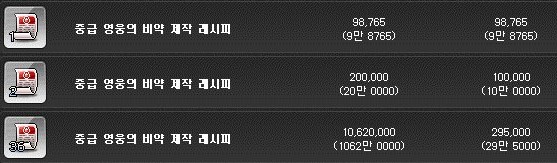 레시피는 경매장에서 10만 메소에 구매할 수 있었다.