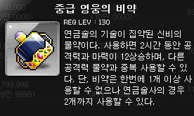 중급 영웅의 비약은 2시간 동안 공격력과 마력을 12 상승시키는 비약이다.