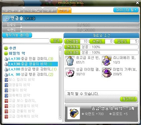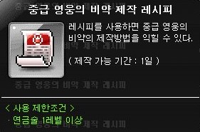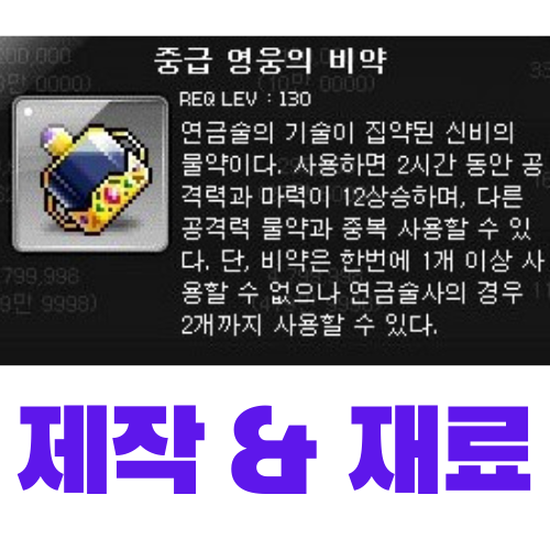 오늘은 중급 영웅의 비약을 제작해 보도록 하겠다.