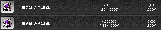 상급 아이템 결정은 개당 약 2만 4천 메소이다.