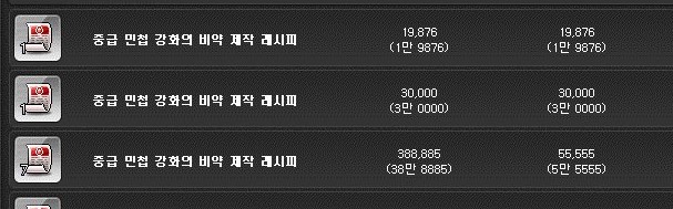 레시피는 경매장에서 2만 메소에 구매할 수 있었다.
