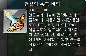 전설의 축복 비약은 사용 제한 레벨이 110이고,