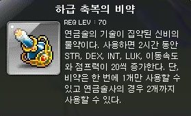 하급 축복의 비약은 사용시 2시간 동안 힘, 덱, 인트, 럭. 올스텟이 20증가하고,