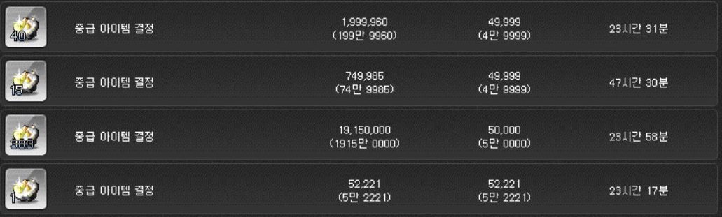 중급 아이템 결정은 개당 약 5만 메소이다.