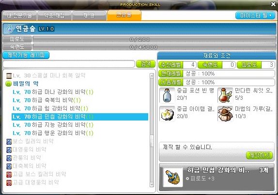 메이플스토리 연금술 돈벌이 <12> 향상된 10단계 민첩의 물약 (재료, 가격)