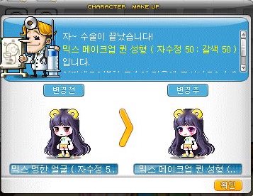 여자 캐릭터의 체인지 로얄 성형외과 쿠폰 선택 가능 성형. (여->남)