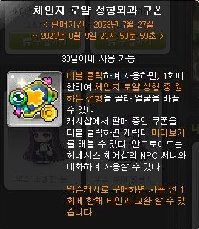 | [메이플스토리] 체인지 로얄 헤어쿠폰 사용하기 (남캐 -> 여캐?) (0) | 2023.08.04 |