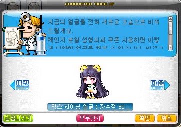 남자 캐릭터의 체인지 로얄 성형외과 쿠폰 선택 가능 성형. (남->여)