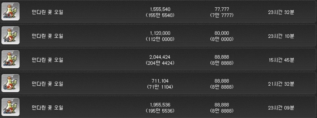 중급 아이템 결정은 개당 약 5만 메소이다.