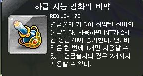 하급 지능 강화의 비약은 사용시 2시간 동안 INT가 40이 증가하는 비약이다.