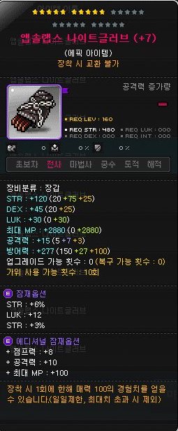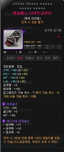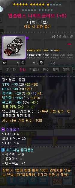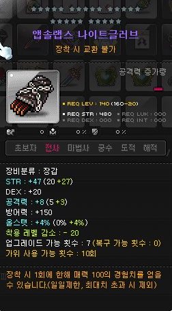 이것도 예전에 추옵작해서 팔려고 사놓은 앱솔랩스 전사 장갑.