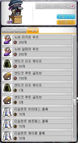 토드용 장갑 구한다고 헬리시움 상점에 가서 150제 장갑인 앤티크 루트 글러브를 구매해 주었다.