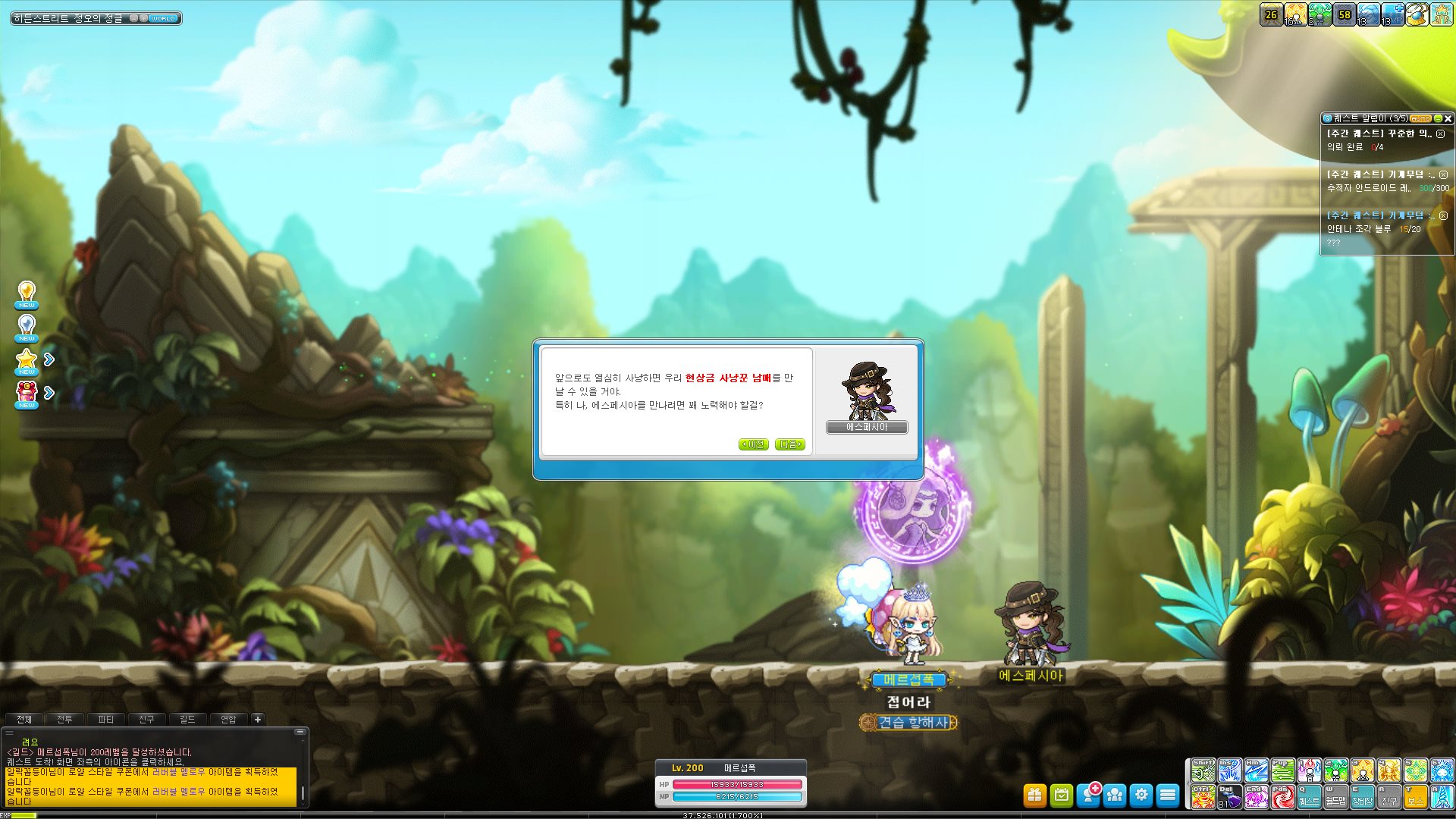 에스페시아 떠서 200레벨을 찍었다.
