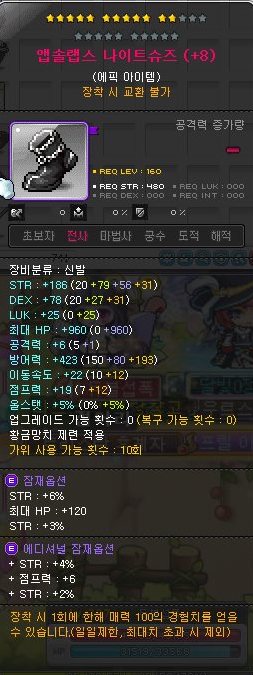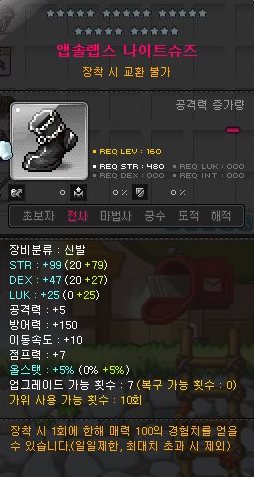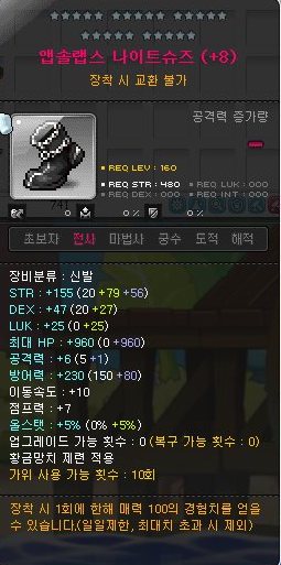 돈벌이 진행하려고 추옵 쓰레기인 제일 싼 앱솔랩스 전사 신발을 하나 사 놓았었다.