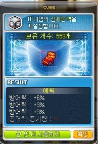 렙제가 낮은 템은 큐브 감정 비용이 2~3만 메소 밖에 안해서 부담이 그렇게 없는데