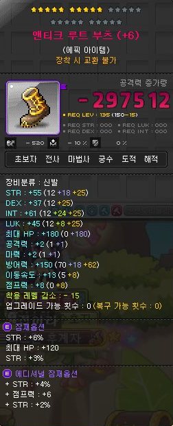 그리고 위의 템의 공격력 보라색 숫자를 보면 7이 오른 것을 확인할 수 있다.