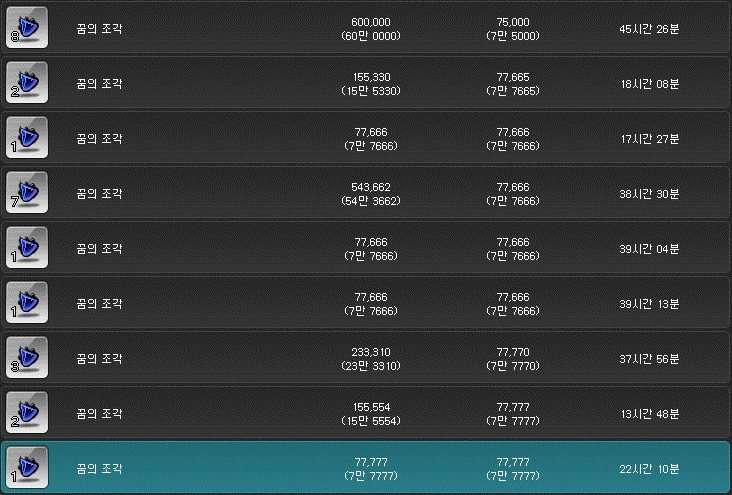 오랜만에 꿈의 조각 사재기 장사를 진행해 보았다.