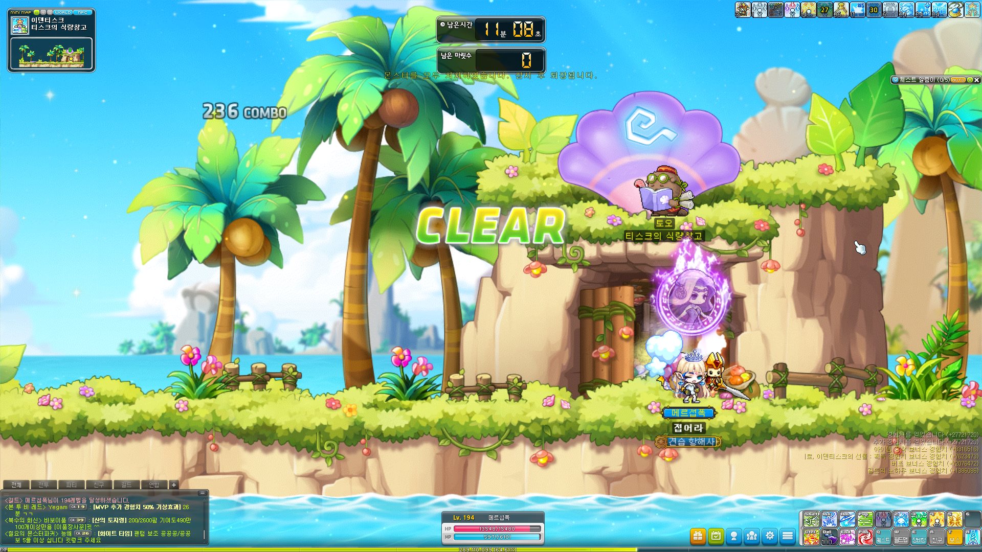 경뿌 받고, 룬 까고, 몬파 익스트림 물약 먹고, 경험치 2배 쿠폰 쓰고