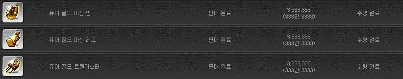아래쪽으로 내리면 퓨어 골드 장비 뿐만 아니라